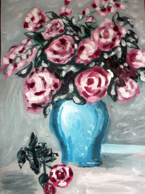 Wciągnęło mnie w to malowanie,jak widać jeszcze mi kwiatki nie wychodzą za dobrze,wiem,że jestem uparta i będę walczyć do końca aż mi wyjdzie lepiej,ten obrazek malowałam akrylami,na zdjęciu jest jeszcze trochę mokry